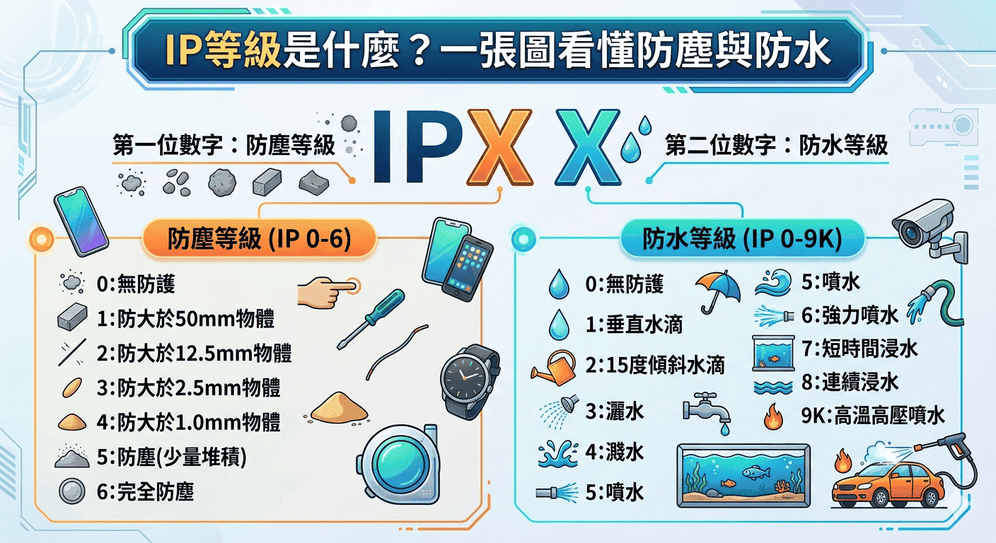 一、IP等級是什麼?一張圖看懂防塵與防水